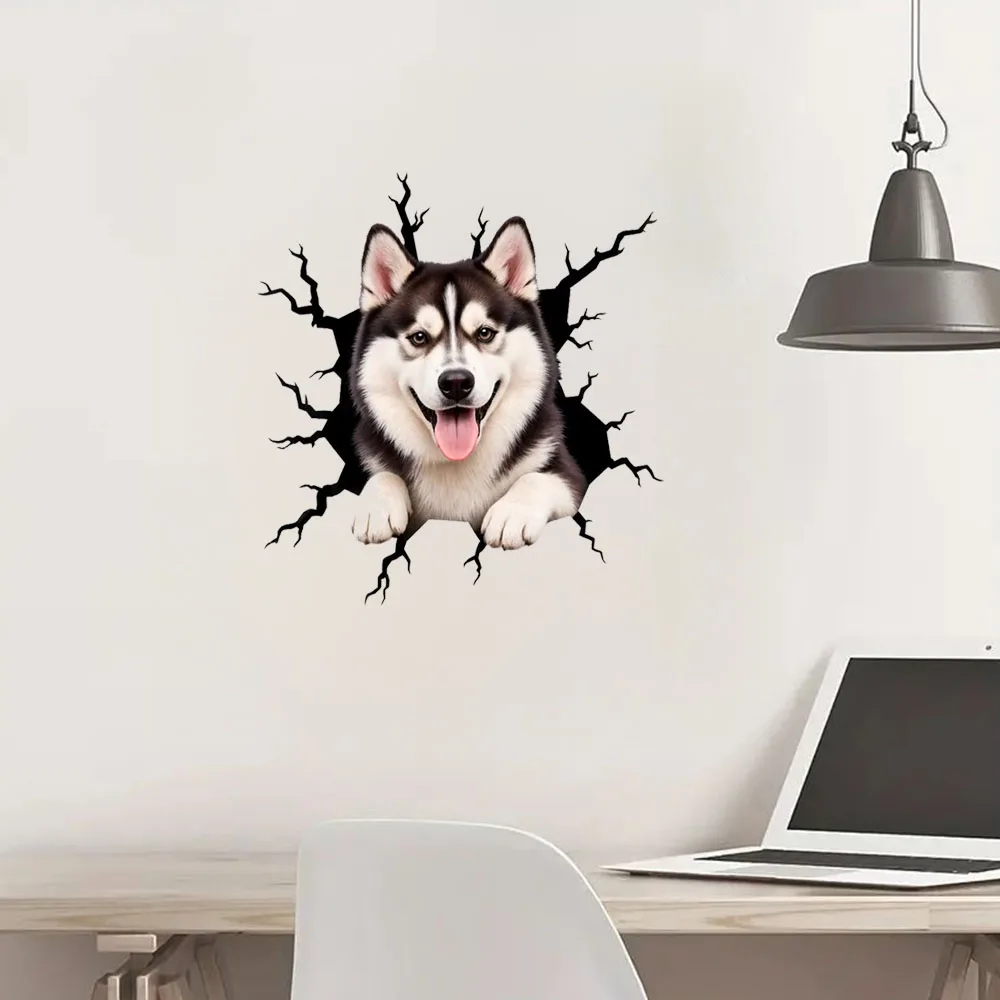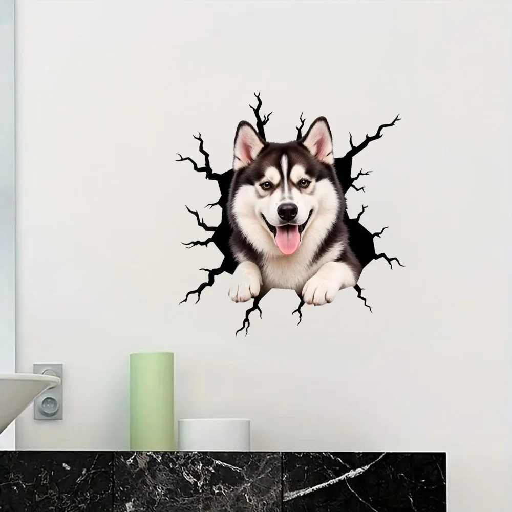 Husky Dog Vinyl Decal Stickers, Bright Wall for Home, Cabinet, Door, Refrigerator Decoration