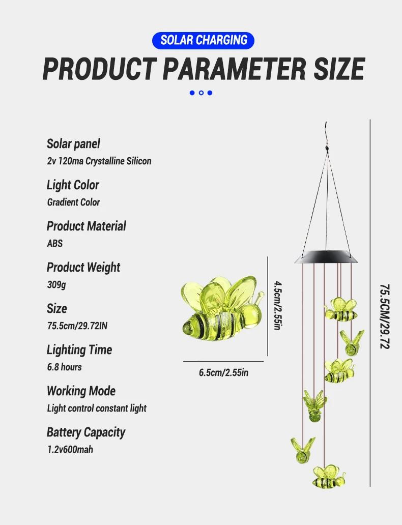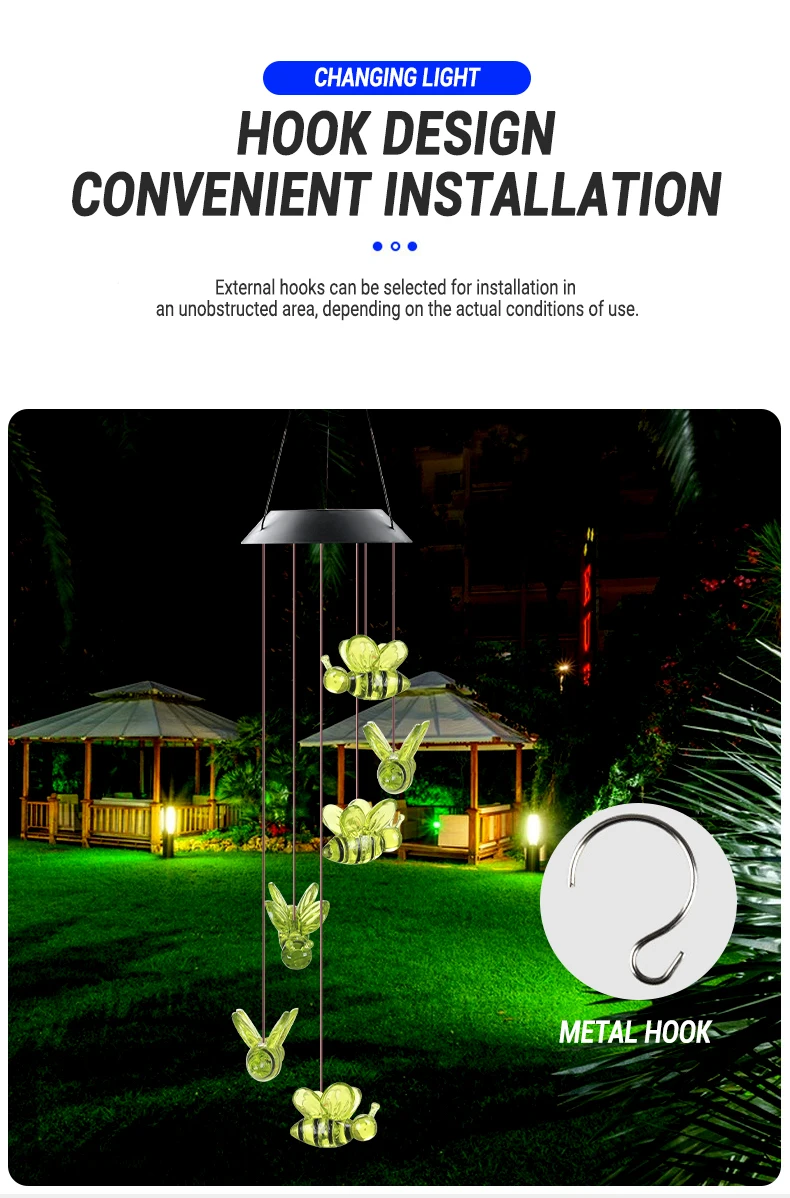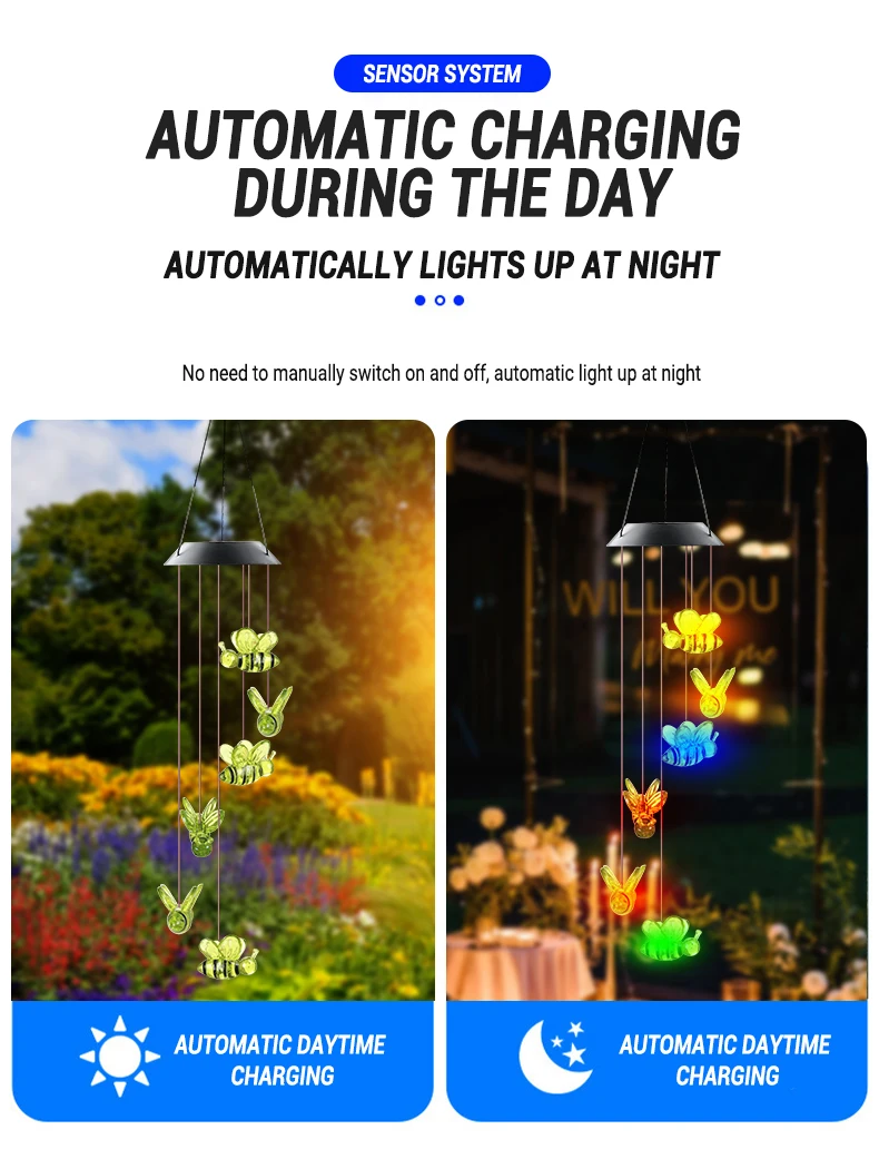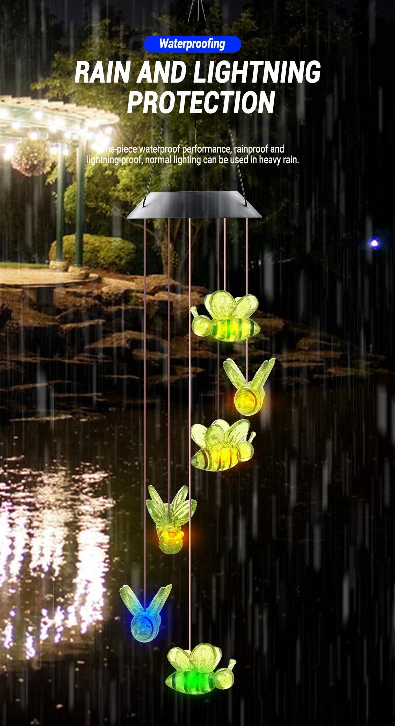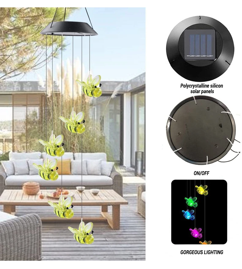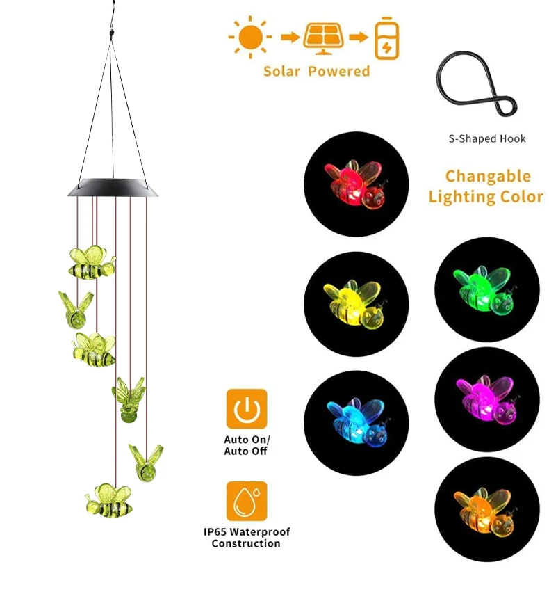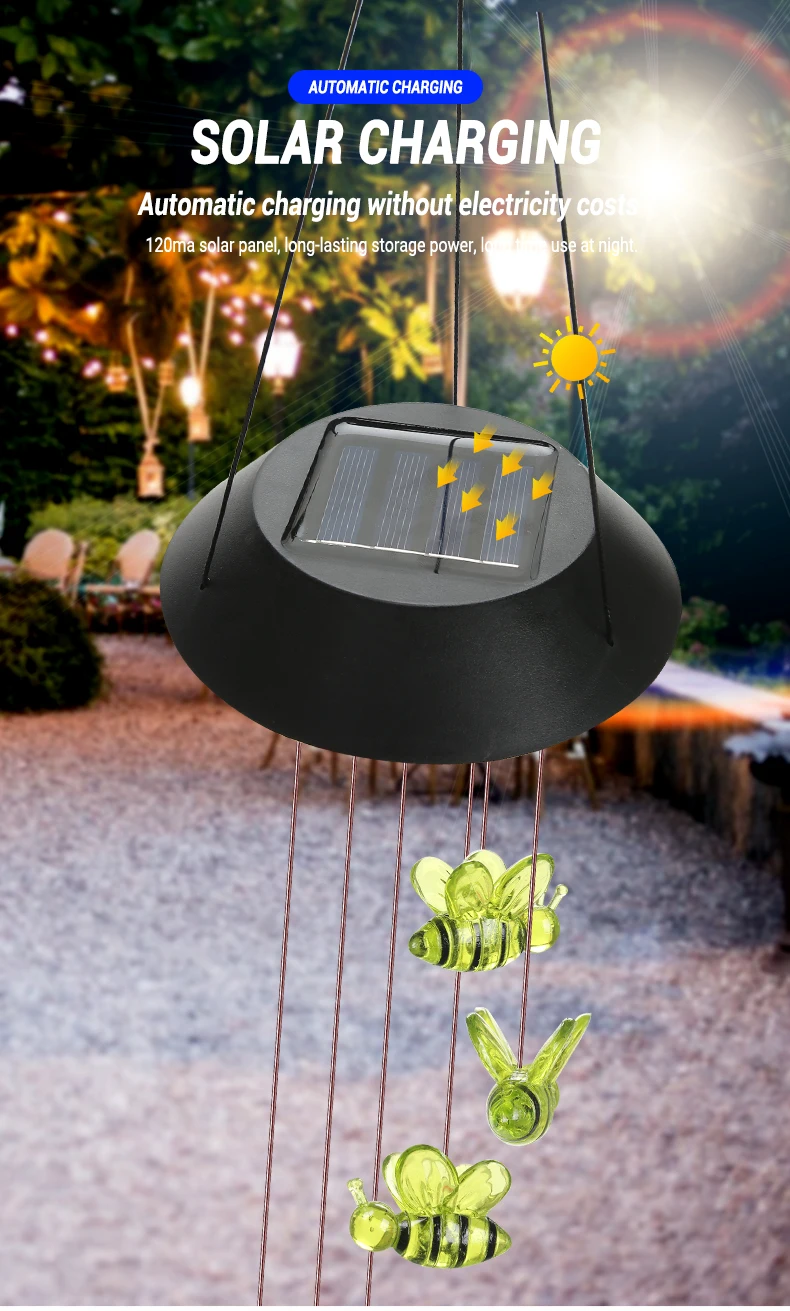 BEE Solar Powered LED Wind Chime || Garden Festival Hanging Decoration Light