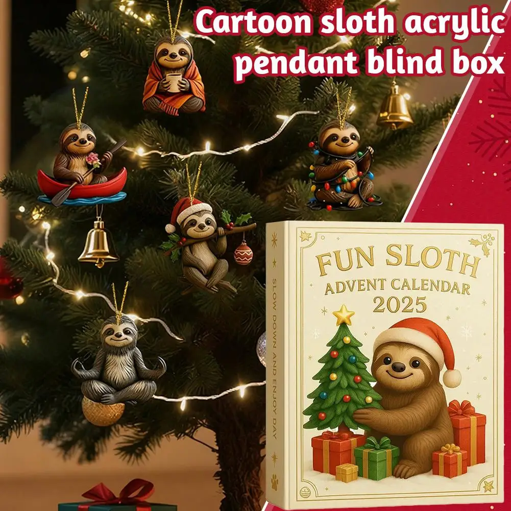 Fun Sloth Advent Calendar 2025 Cartoon Sloth 2D Flat Acrylic Pendant Christmas Surprise Blind Box Children's Gift