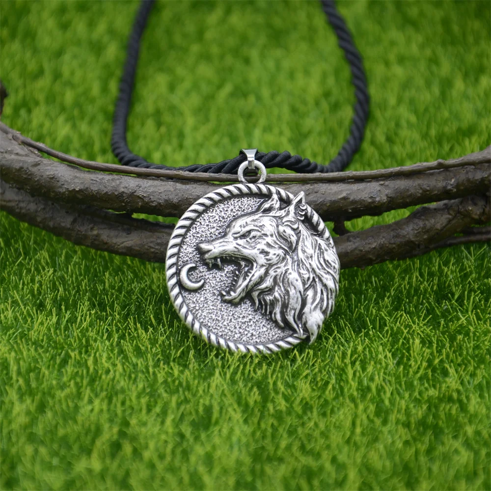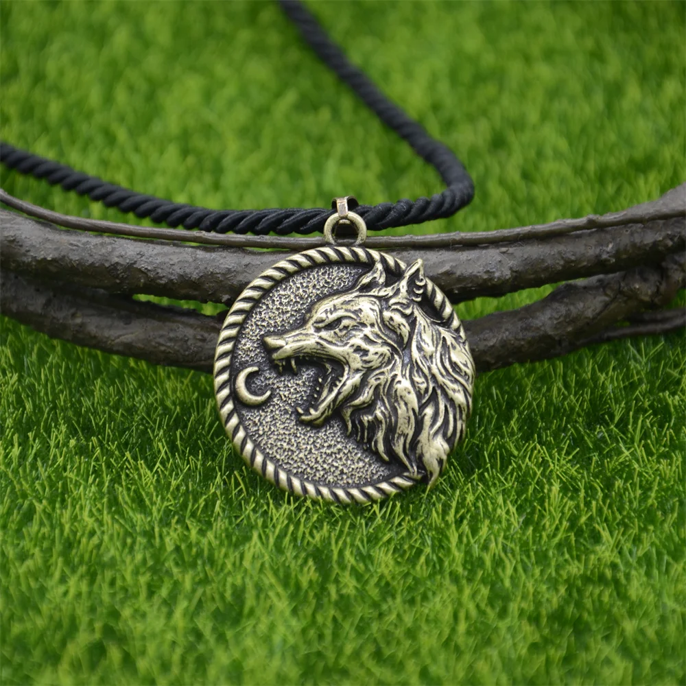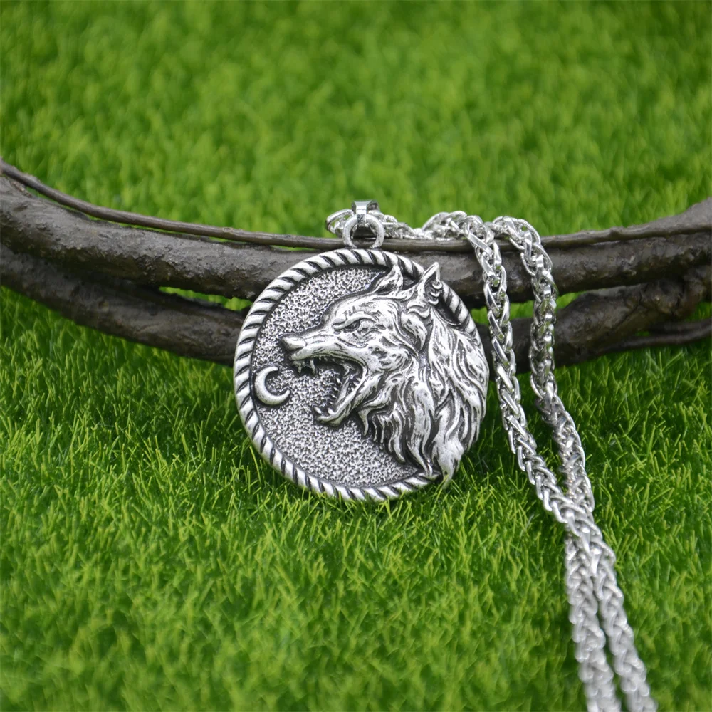Vintage Viking Wolf Moon Pendant Necklace for Men