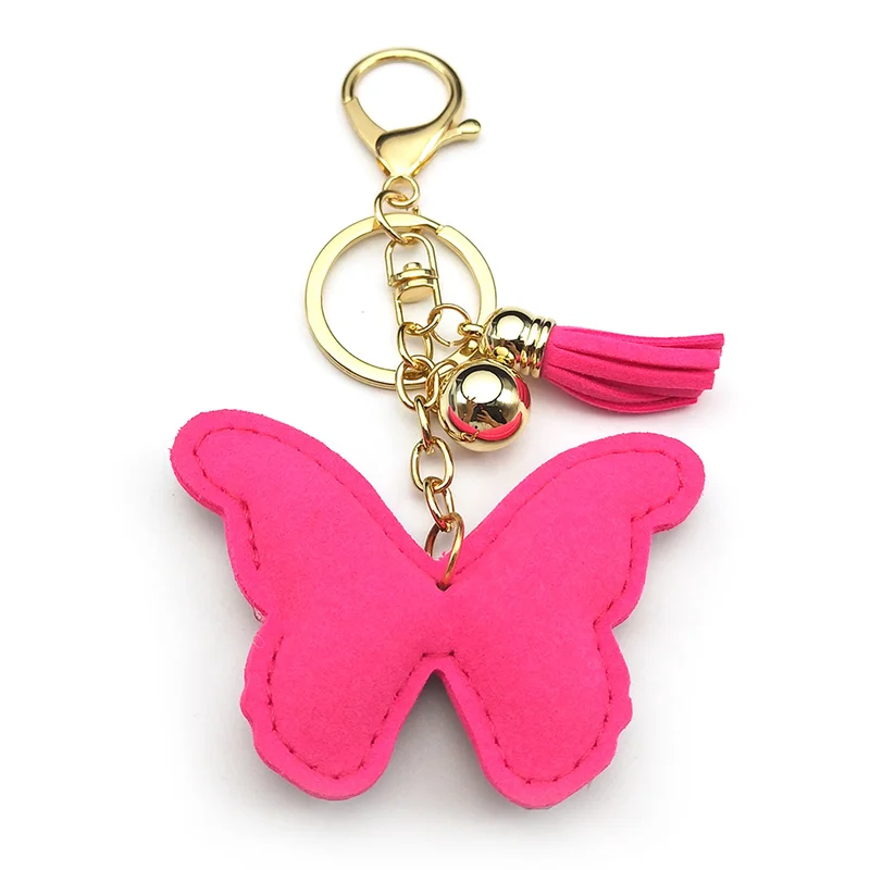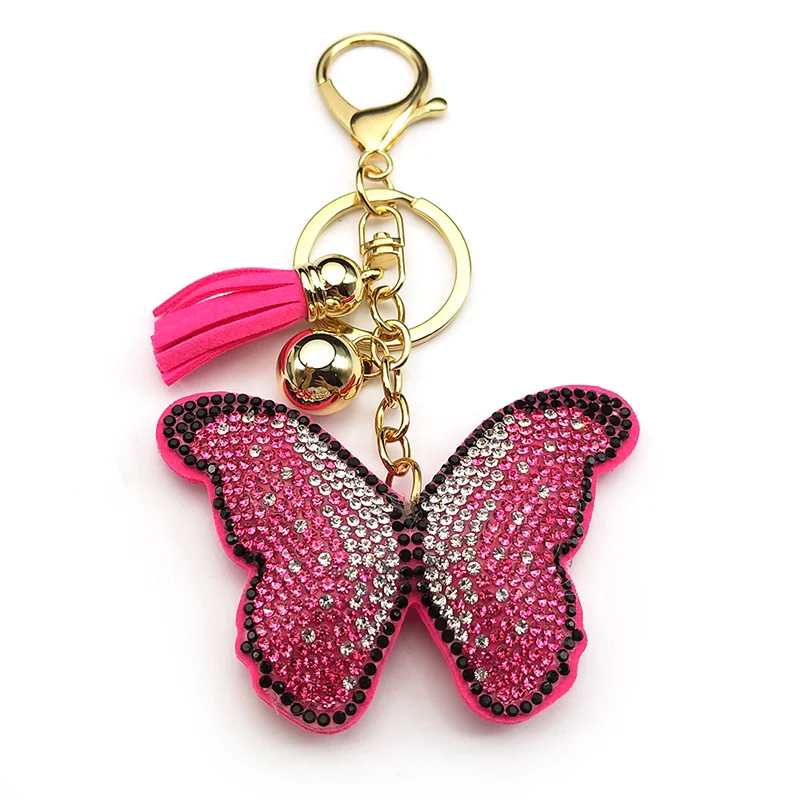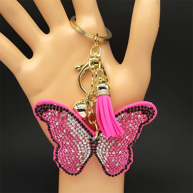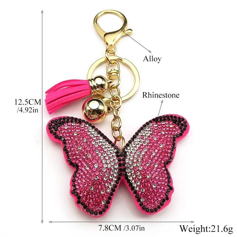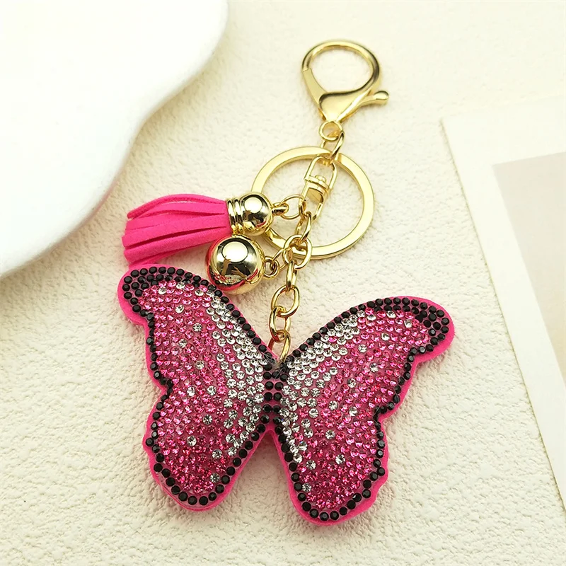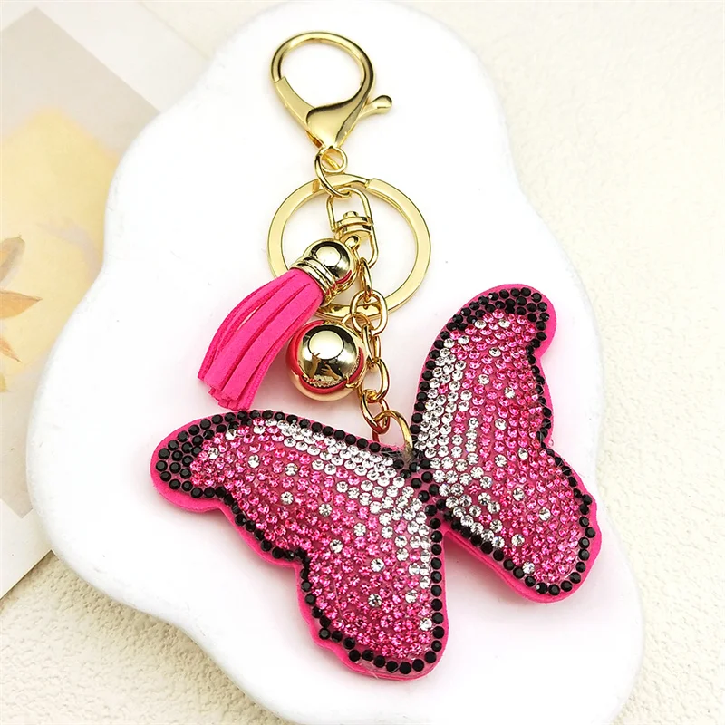 Pink Butterfly Female Keychain For Women Men Rhinestone Tassel Kawaii Bag Wallet Hanging Charm Kawaii Keyring Jewelry Gifts