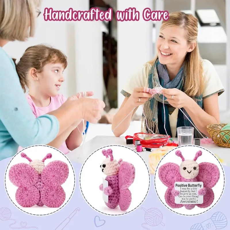 Preamade Positive Crochet Butterfly Gift, Handmade Emotional Support Plush for Friends, Girls, Teachers, Birthday Christmas