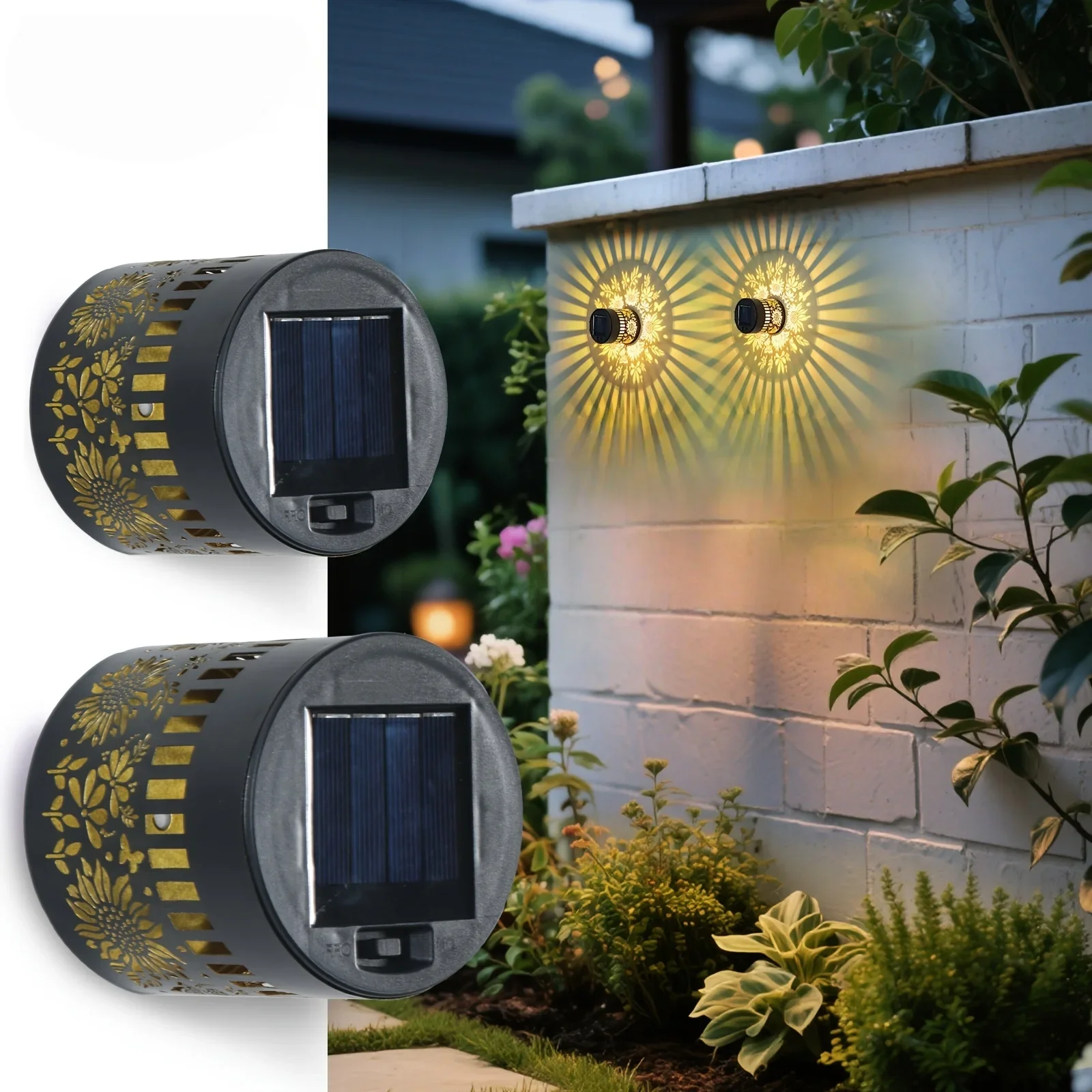 Solar Outdoor Wall Lights Garden Landscape Lighting with Easy Installation LED Sunflower Cut-out Designs Hanging Lamp