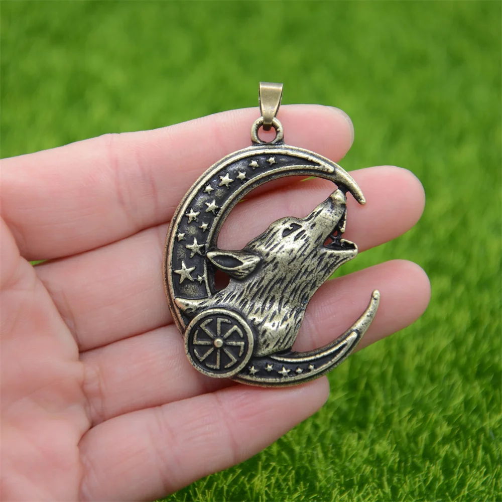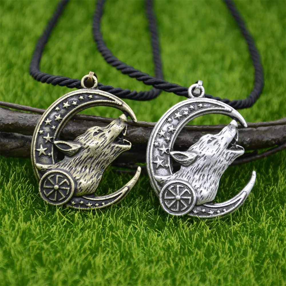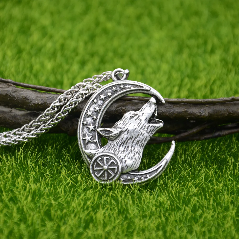 Item Name:Nostalgia Slavic Kolovrat Symbol Pendant Viking Wolf Amulet Wicca Pagan Crescent Moon Necklace Star Witchcraft Wiccan Jewelry